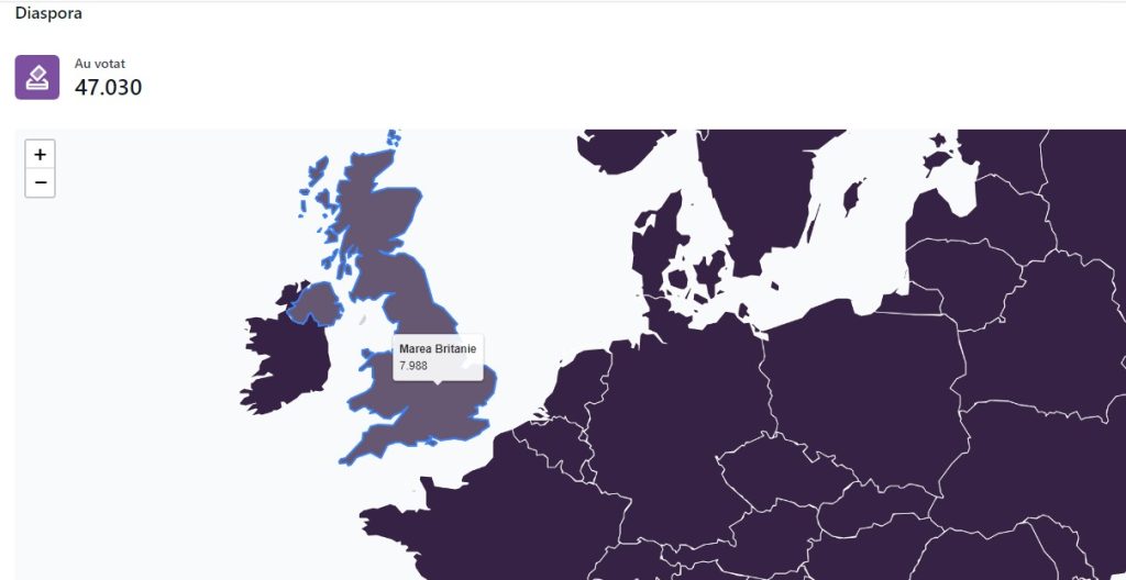 La o consultare rapidă a datelor furnizate de cei de la rezultatevot.ro (agregator de date oficiale furnizate de AEP) cei mai mulți români votaseră în Marea Britanie, aproximativ 8000 din totalul celor aproximativ 47.000 de români ce își exercitaseră acest drept. Într-un clasament de moment, al numărului de voturi înregistrate, urma Moldova (aprox.5600 de voturi), Germania (aprox. 5400 de voturi înregistrate) și Italia (aprox.5100 de voturi înregistrate).