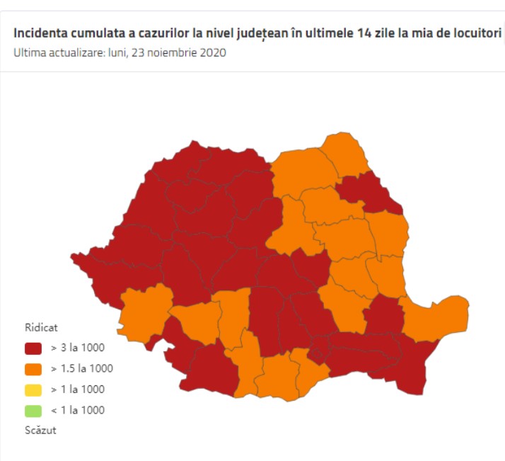 Pe de altă parte, în plan local, autoritățile locale (fie reprezentând Guvernul, fie din așa numita Opoziție parlamentară) preferă sa nu facă nimic și doar să ignore gravitatea fapelor (epidemia de COVID-19) cu speranța că neachiesarea, la eventuale măsuri restrictive, le va aduce un câștig electoral, la scrutinul din 6 decembrie. În același timp însă, epiemia de COVID-19 pare că are o cu totul altă agendă, ce nu ține cont de scrutinul românesc, iar România devine rapid, apropae în integralitate, o țara în scenariul roșu, în ceea ce privește epidemia de COVID-19.