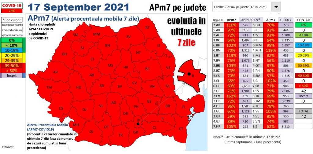 România se îndreaptă cu pași mari spre un dezastru epidemiologic. Rata de creștere a infectărilor cu SARS-CoV-2 a atins deja, în data de 17 septembrie, un indice de creștere de peste 50% în toate județele tării. Anunțul a fost făcut de omul de știință Octavian P. Jurma. ( absolvent al Universității de Medicină și Farmacie “Victor Babeș” din Timișoara și Neurosciences and Molecular Biology, la University of Southern California.). Acesta a anuțat printr-o postare pe facebook, ce utilizează un tipar matematic și statistic că, inevitabil, România va cunoaște un val 4 al pandemiei cu mult mai agresiv decât precedentele. Mai jos regăsiți avertismentul:
