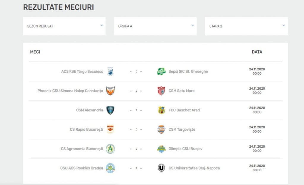 FRB a decis să organizeze la București primul turneu al campionatului feminin în perioada 24-26 noiembrie, atunci când fiecare echipă va juca câte trei meciuri. Toate cele 12 echipe din seria unică se vor aduna în Capitală și vor disputa partidele în Arena de Baschet și în Sala Agronomia.