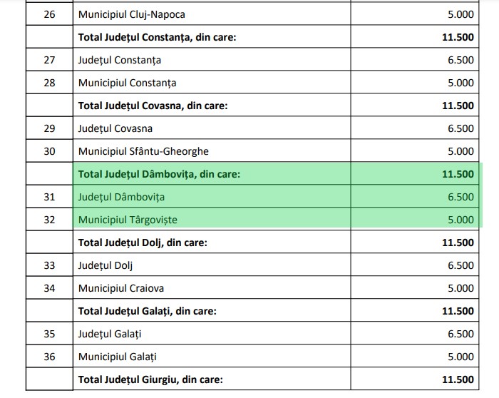 Fără niciun fel de criteriu, și fără a ține cont de faptul că urgența (cea privind termoficarea si prețurile mai mari la energie) ce justificau, oarecum, inițial, decizia rectificării bugetare, fiecare Consiliu Județean din țara a primit suma de 6,5 milioane de lei, iar fiecare primărie reședință de județ suma de 5 milioane de lei.