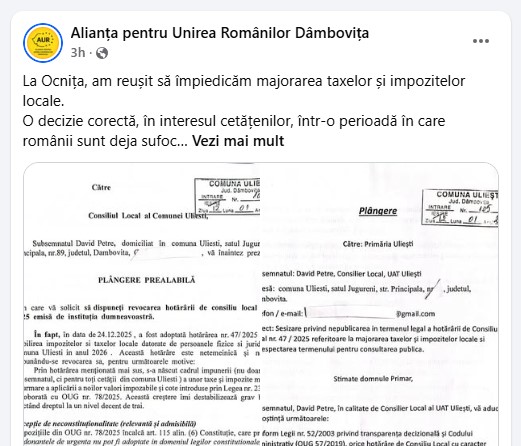 Cum la fel de politiicianistă este și reacția AUR, ce anunță cu mândrie că au ei au blocat majorarea taxelor și impozitelor de la Ocnița, pentru că ei sunt de partea oamenilor (n.m. – AUR a avut un singur vot, din cele 7 prin care proiectul a fost declarat respins). Ipocrizie, cât cuprinde, încă o dată, de fapt.