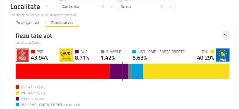 Foto: rezultate alegeri locale, la Ocnița, în anul 2024 (sursa-https://istoric.rezultatevot.ro/elections/)
