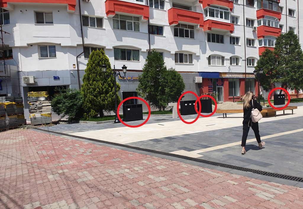 “Piața Revoluției” (centrul orașului) recent reabilitată, proiect finalizat, s-a umplut de coșuri de gunoi ecologice, pentru colectare de deșeuri reciclabile (sticlă, carton, plastic). Foarte frumos, dar parcă sunt cam multe, vreo 20×3, pe doar vreo 100 de metri liniari. O fi vorba de ceva bani la mijloc, mai bine spus de câteva mii de euro bucata? Așa umbă vorba în târg. Desigur că e lumea rea și, de fapt, în centru orașului e vadul cel mai bun (singurul) pentru a se colecta deșeurile selectiv. Sau…