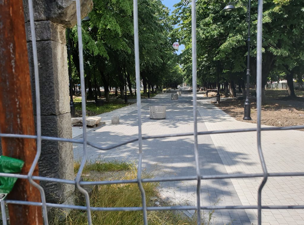 “Parcul Mitropoliei“, aflat în reabilitare. De fapt, ar fi trebuit să fie gata în 15 mai 2021, după 1 an și patru luni de reabilitare. Parcă mai e ceva de lucru, nu-i așa?