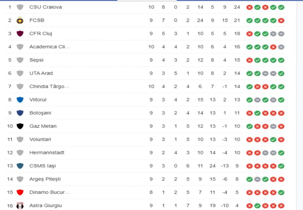 Chindia Târgoviște a reușit o victorie nesperată, în fața liderului din liga I de fotbal, Universitatea Craiova, într-o partida contând pentru etapa 10-a a Ligii I de fotbal.