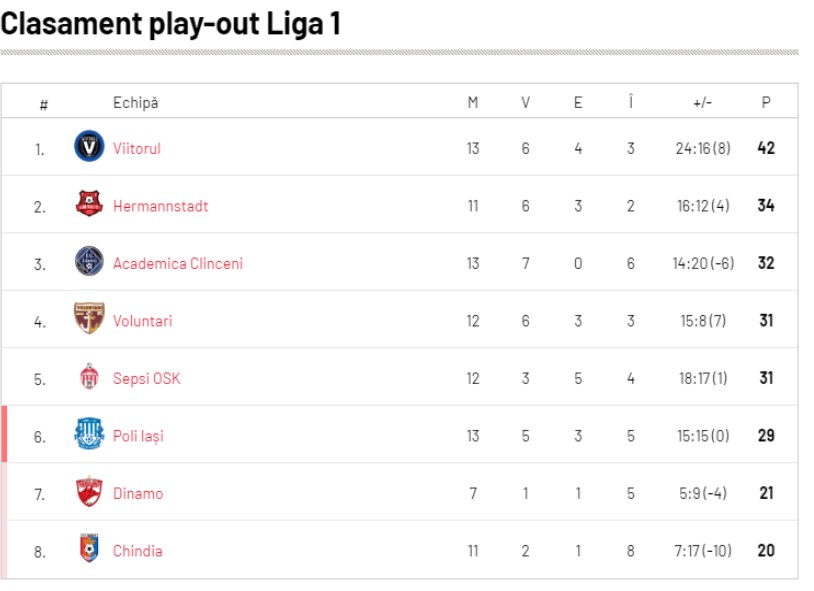 Chindia ar mai avea de jucat trei meciuri (două restanțe cu Dinamo și încă un meci cu Voluntari) dar cum dâmbovițenii se află la 9 puncte distanță de locul de baraj, ocupat de Poli Iași, șansele de a scăpa de retrogradarea directă sunt practic zero.