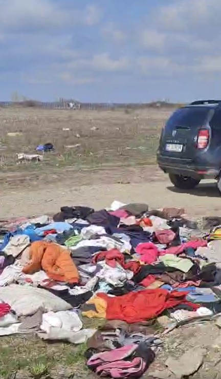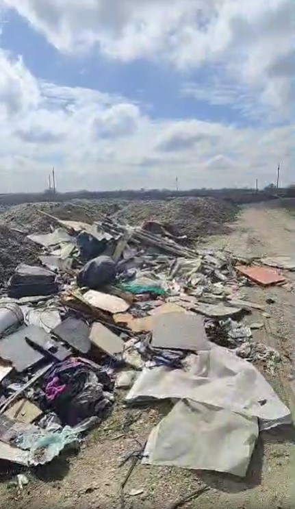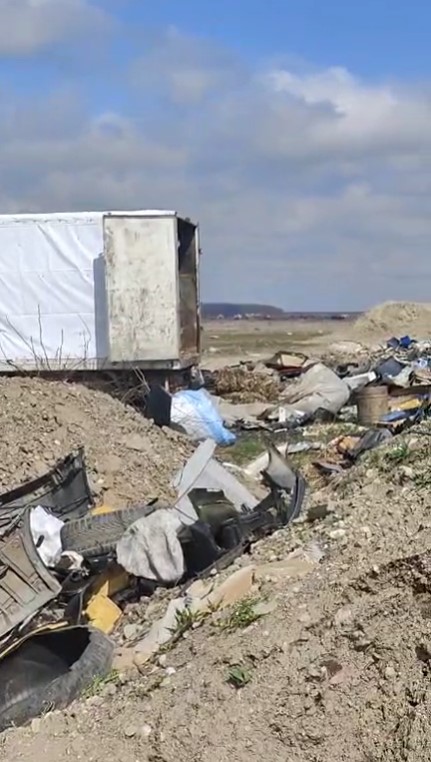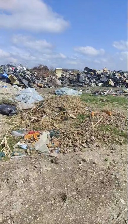 Foto: Depozit de deșeuri pe câmp ( Sat Bălteni, comuna Conțești, Dâmbovița, octombrie 2023); Depozitul trebuia să aibă un caracter temporar, fiind organizat pentru sortarea unor deșeuri