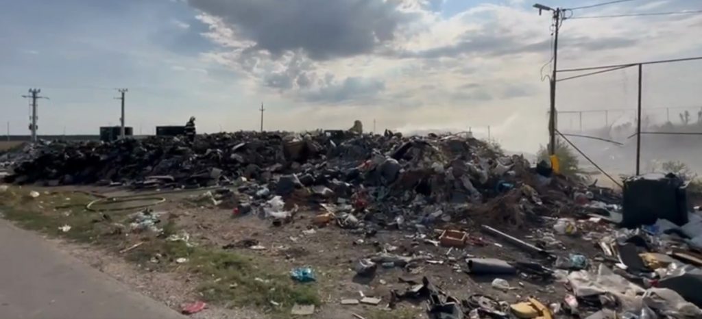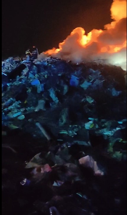 Ajuns la fața locului, echipajul a constatat că ardea o cantitate de aproximativ 500 kg gunoi menajer și materiale plastice.