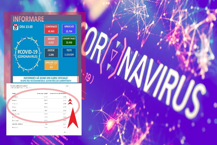 Până astăzi, 27 iulie, pe teritoriul României, au fost confirmate 45.902 cazuri de persoane infectate cu noul coronavirus (COVID – 19).