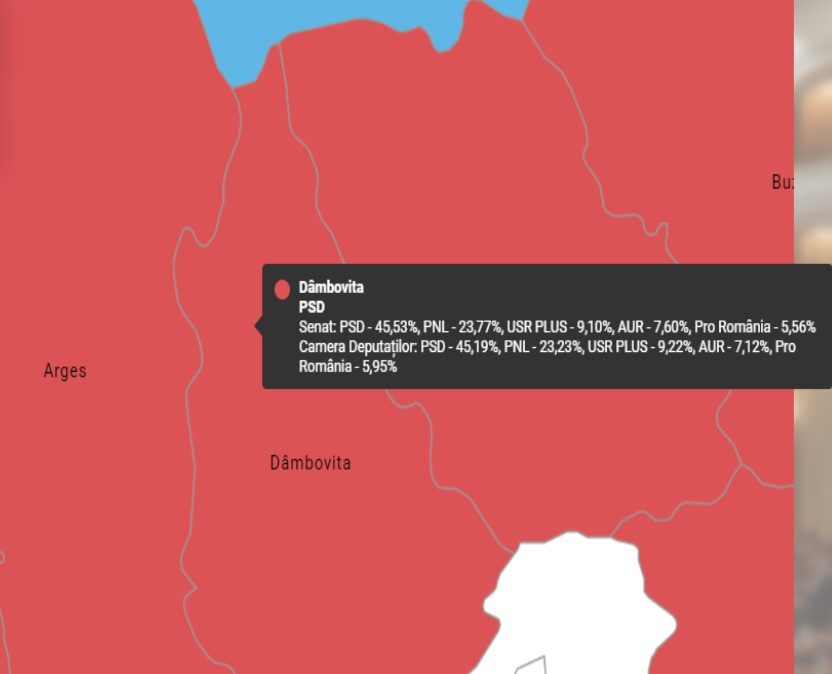 PSD Dâmboviţa 61.285 de voturi, ceea ce reprezintă 45,53% din voturile valabil exprimate,