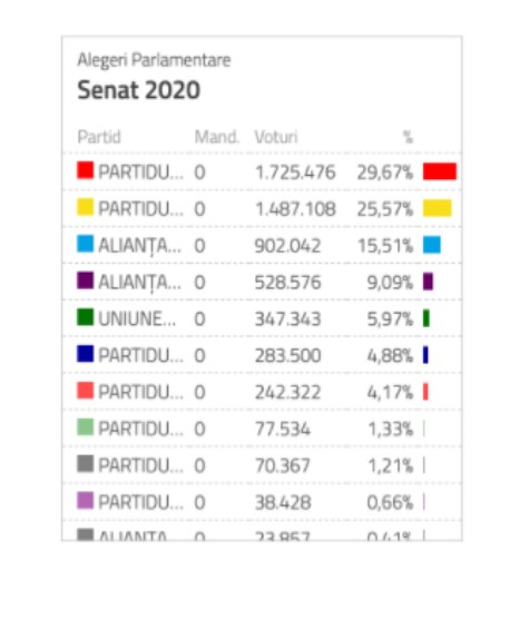 S-au prezentat la urne 7.323.368 alegatori. ( boldat partidele ce au intrat în Parlament și în 2020)