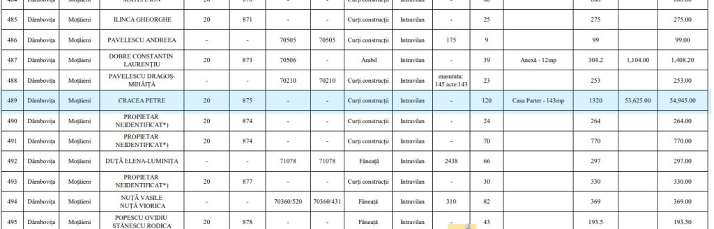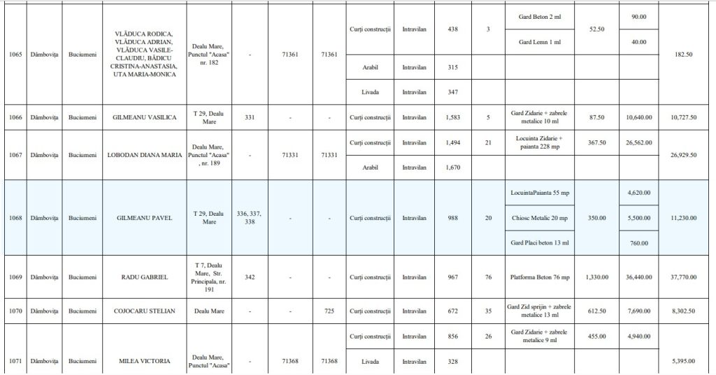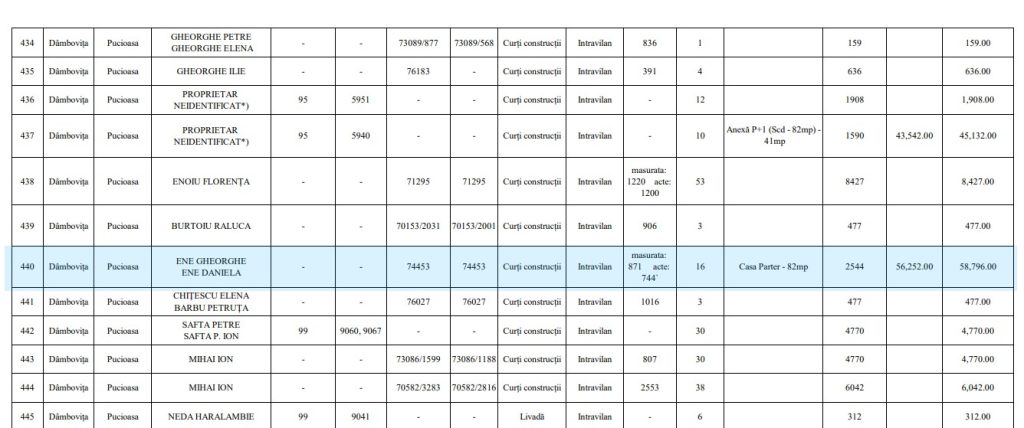 Nu este singurul exemplu de acest tip. Vezi, mai jos, tabel cu case ce urmau a fi expropriate, la Moțăieni sau Pucioasa, subliniat cu albastru, la prețuri de 10-11.000 de euro.