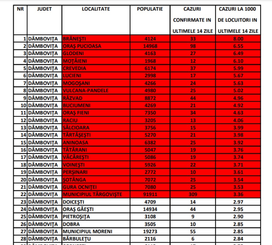 Spre exemplu un oraș, precum Pucioasa, cu o incidență a cazurilor de 6,55 la mie ( peste pragul recomandat, de 6 la mie, de luare în discutie măcar a carantinei) nici nu se discută a fi luat în considerare pentru măsuri suplimentare. Iar la Pucioasa oraș cu mai puțin de 15.000 de locuitori, numărul de cazuri a explodat, fiind aproape 100, în acest moment.