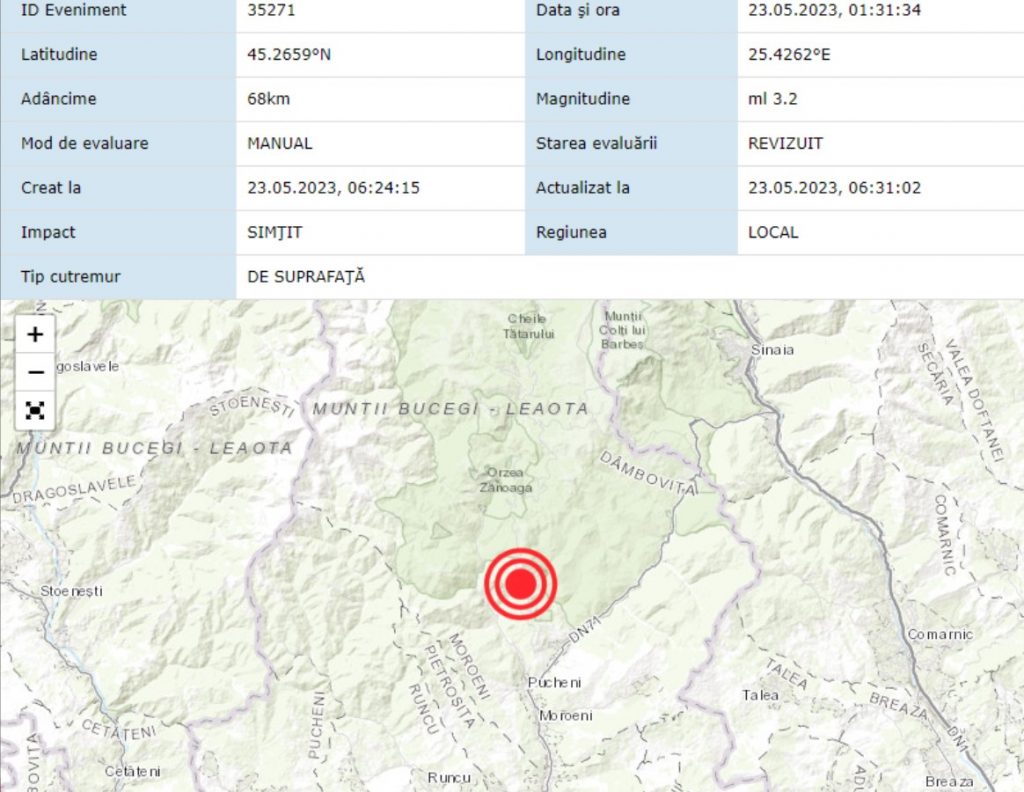 Ultima este cea “vinovată” de producerea celui mai recent seism ce a “lovit” și județul Dâmbovița, unul produs la o distanță de 37 de km de Târgoviște, în vecinătatea DJ 714, în Parcul Natural Bucegi ( pe raza comunei Moroeni).