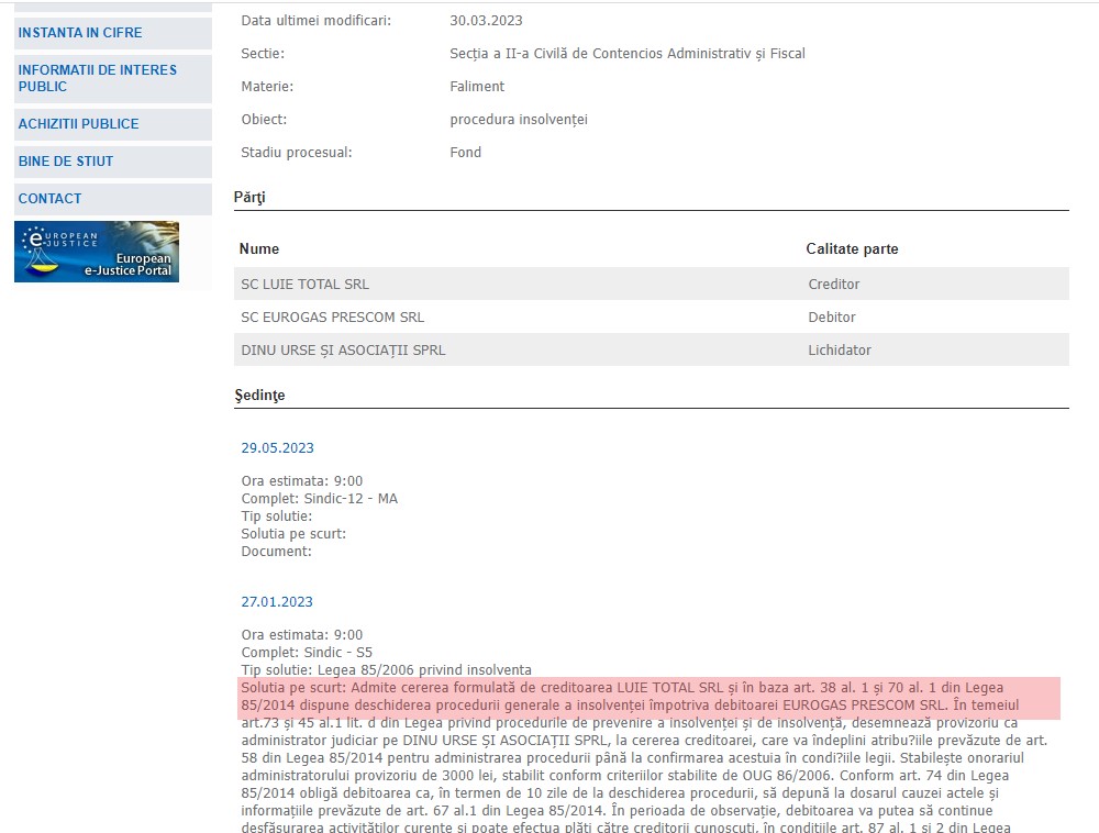 Al doilea parteneriat posibil, cel dintre ADI Salubritate și Eurogas Prescom nu prea există, fiind mai multe litigii în instanță între părți ( din 2021 se încearcă suspendarea contractului celor de la Eurogas Prescom, societate ce, din februarie 2023, este în insolvență, deci aproape de faliment, conform unei hotărâri a Tribunalului Dâmbovița).