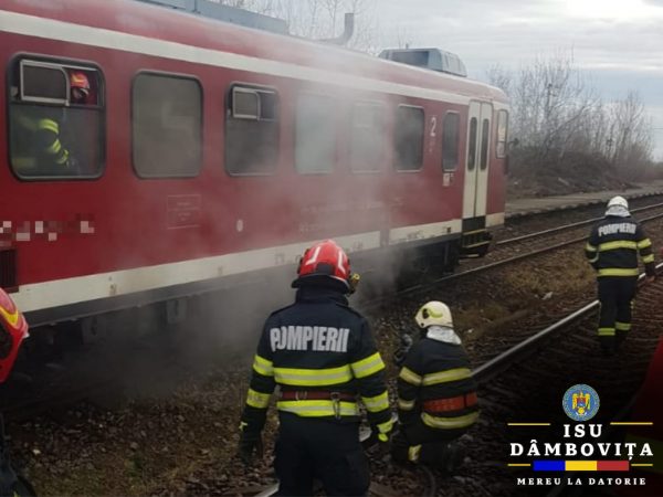 Intervine Detașamentul de Pompieri Titu cu două autospeciale de stingere cu apă și spumă și un echipaj SMURD, iar Detașamentul de Pompieri Târgoviște cu o autospecială de stingere cu apă și spumă.La fața locului echipajele de intervenție au constatat faptul că incendiul se manifestă la nivelul instalației electrice al primului vagon cu degajări de fum.Pasagerii (n.m.- aprox. 20 de persoane) au fost evacuați.