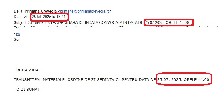 Acolo, la Crevedia, s-a descoperit brusc ce înseamnă „forță majoră” din Codul Administrativ pentru convocarea Consiliului Local, că tot vă întrebam zilele trecute: