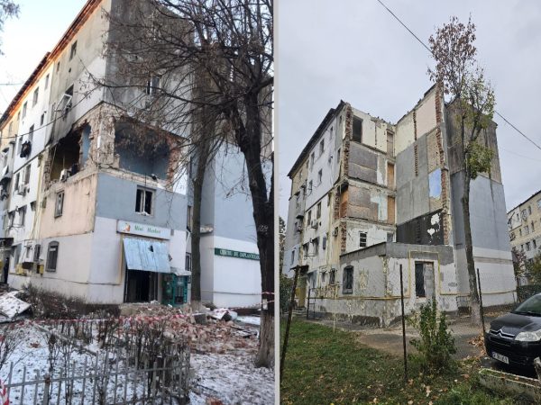 Foto: Blocul 18 din Găești, în ianuarie 2021, la câteva ore după explozie