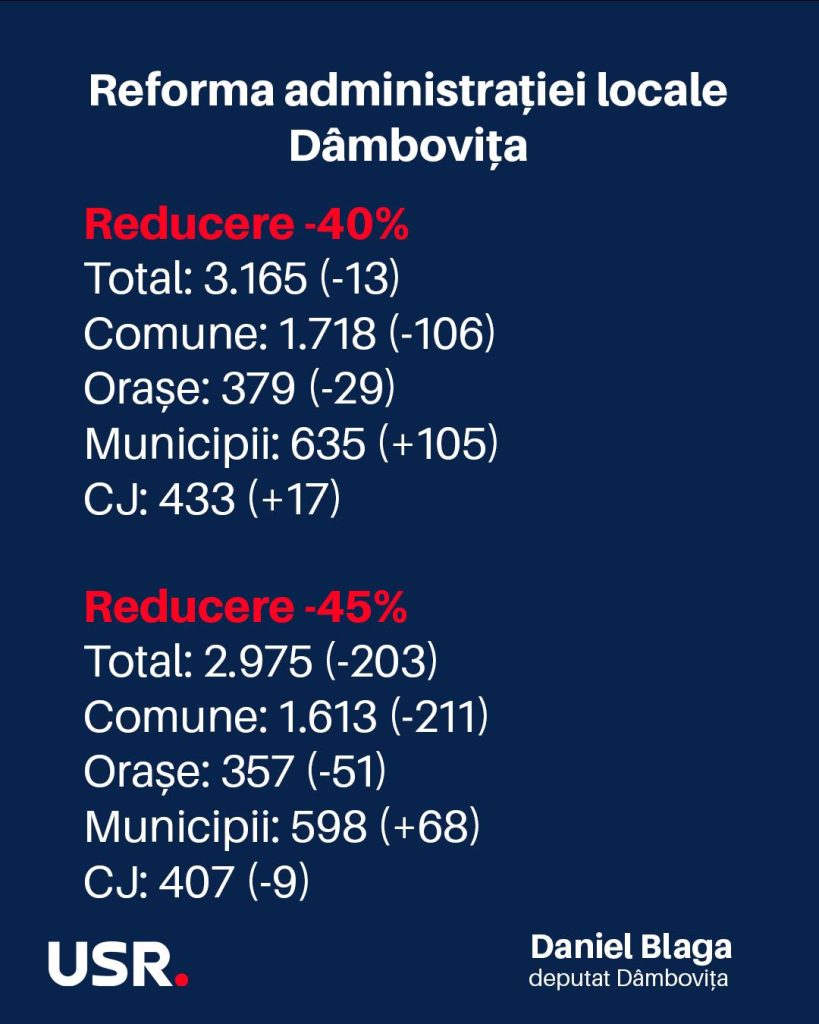 În Dâmbovița, după cum spune si deputatul Daniel Blaga (USR) situația ar fi departe de a fi una dramatică. doar aproximativ 200 de posturi ocupate urmând a fi reduse , conform estimării făcute în baza propunerilor actuale.