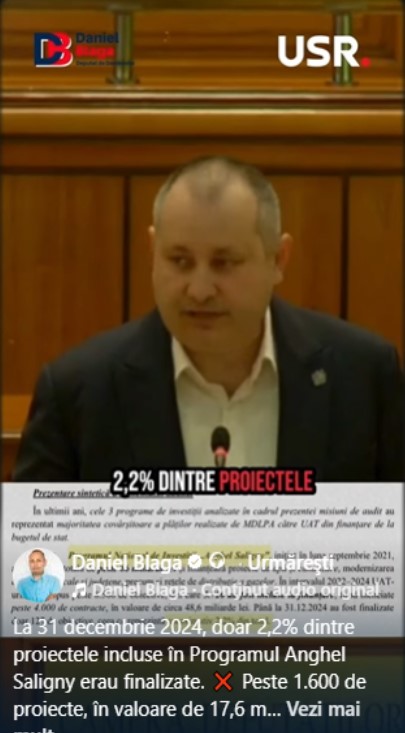 Deputatul dâmbovițean Daniel Blaga (USR) a luat poziție, în Parlament, față de întârzierile majore din programul “Anghel Saligny”. “Sunt bani blocați în proiecte neterminate”. Ceea ce face ca multe comunități să fie ținute pe loc, spune deputatul dâmbovițean.