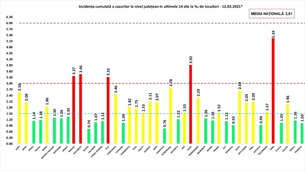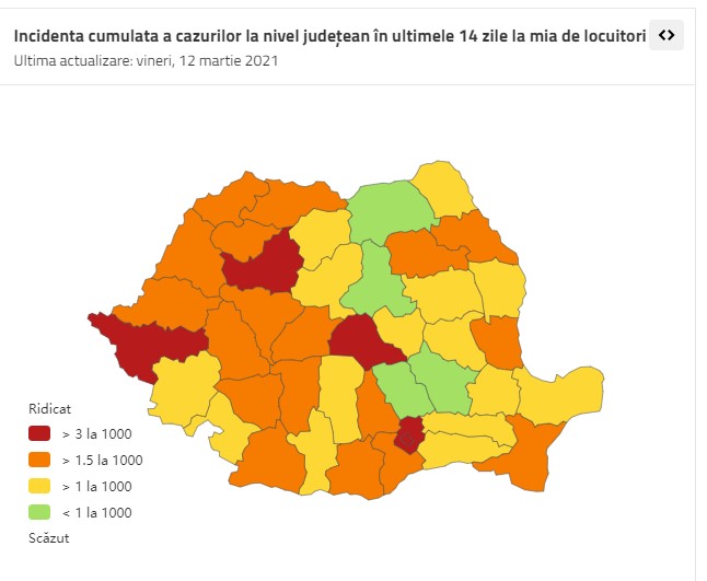 În ceea ce privește epidemia de covid-19, situația, în data de 12 martie, se prezintă astfel: