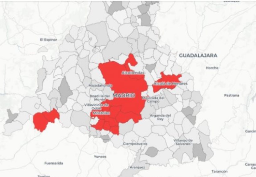 În Spania deja mai multe zone, în special din zona capitalei Madrid, au fost trecute în lockdown.