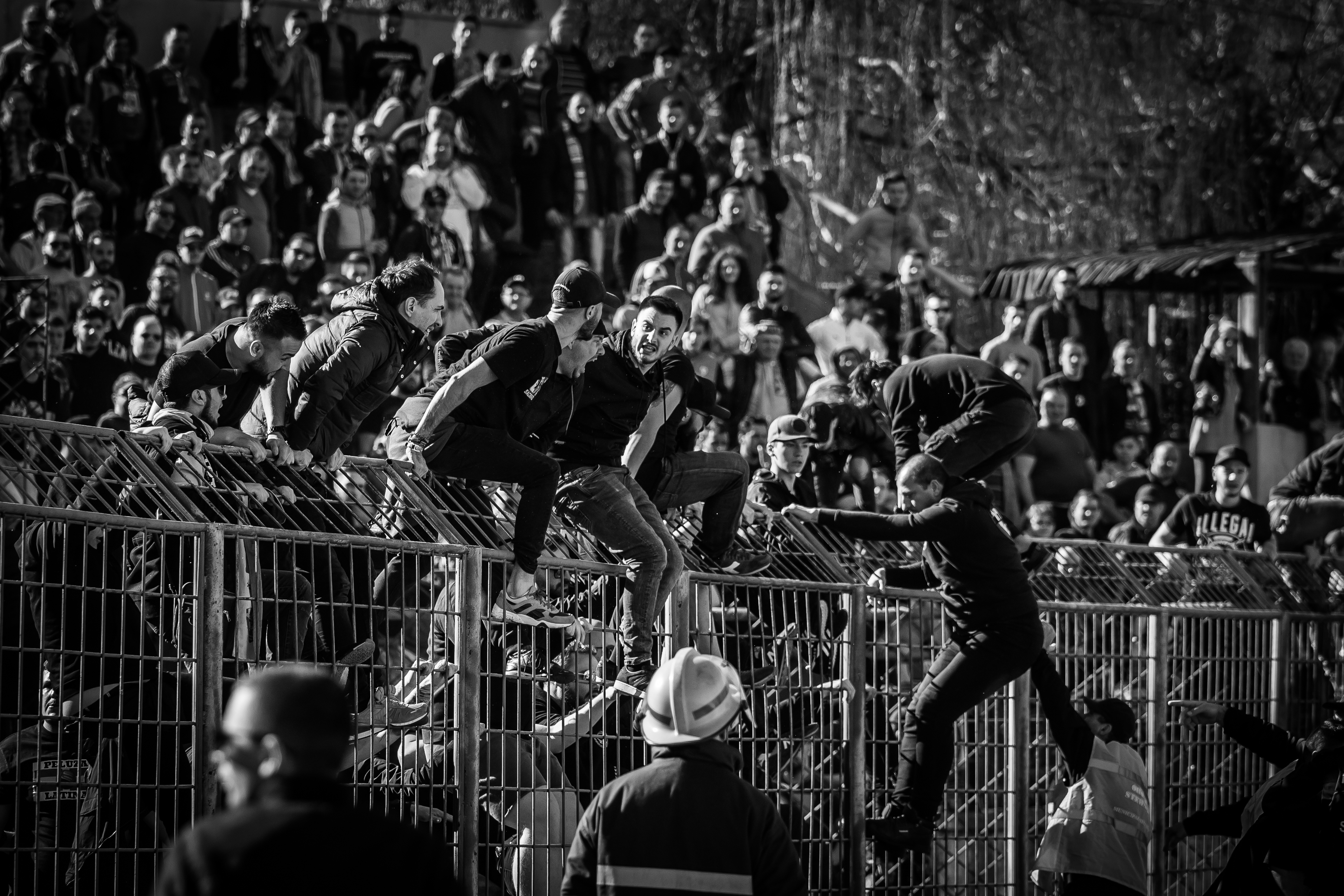 Concret, au furat un steag, s-au apărat de forțele de ordine, ce au vrut să aplaneze un conflict ce risca să “mistuie” tribuna, și au scandat preț de vreo două ore. Au scandat și gazdele târgoviștene, dar parcă cu mai puțină convingere. Până la urmă a fost doar 0-0. O poveste în câteva fotografii, realizate de Ionuț Iacob.