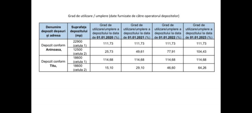 Foto: Informare privind gradul de umplere al depozitelor de deșeuri de la Aninoasa și Titu ( ADI Managementul Integrat al Deșeurilor Dâmbovița)
