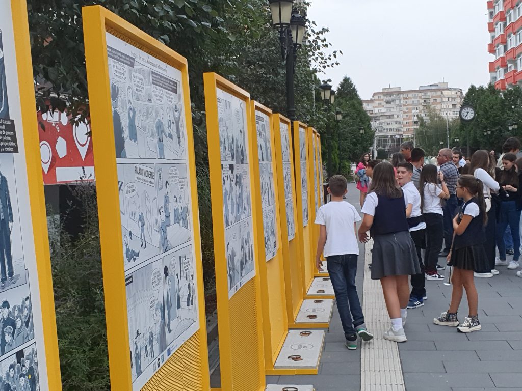 “Imagini din trecut. Holocaustul din România” este o expoziție de bandă desenată realizată în cadrul proiectului cultural-educațional „Visualising The Past Through Graphic Novels. Prompting Local Involvement For Holocaust Remembrance In Romania” finanțat de Uniunea Europeană prin programul Citizenship, Equality, Rights, Values (CERV-2022-CITIZENS-REM), implementat de Institutul ,,Elie Wiesel” în zece județe din România (Bihor, Botoșani, Cluj, Constanța, Dâmbovița, Gorj, Maramureș, Prahova, Sibiu, Timișoara) cu sprijinul Fundației Freedom House România și a comunităților locale.” Au anunțat cei de la Institutul “Elie Wiesel”.