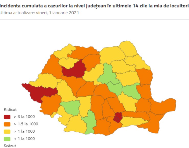 Anul e nou, dar problemele din 2020, din păcate, nu au dispărut, odată cu schimbarea din calendar. Și 2021 aduce cu sine, așa cum s-a întâmplat mai mereu în ultima lună (decembrie 2020), o raportare cu destul de multe cazuri noi de îmbolnăvire cu SARS-CoV-2, ținând cont de numărul de teste realizate. Totuși, dat fiind faptul că această tendință a fost menținută, pe final de 2020, “harta coronavirusului”, în România, tinde să se coloreze din ce în ce mai mult în verde. Deși, aparent, situația este una favorabilă, în realitate epidemia (pandemia) este departe de a fi eradicată.