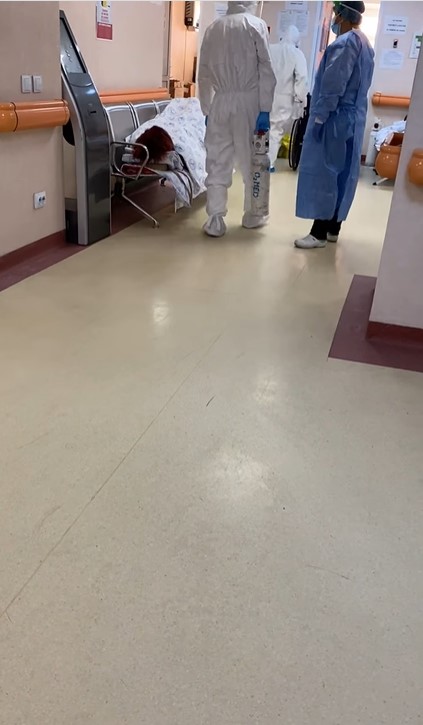 Bolnavi tratați pe holurile spitalului, Spital “Matei Balș” București-24 noiembrie 2020