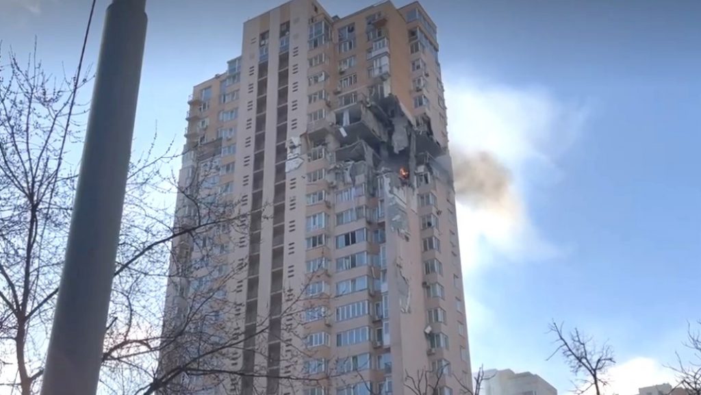 La Kiev un bloc de locuințe a fost lovit de rachete rusești, ale trupeor ce asediază Kiev-ul. Peste 30 de ucrainieni au fost răniți ( nu se știe câți au fot uciși, dacă au fost și persoane decedate).