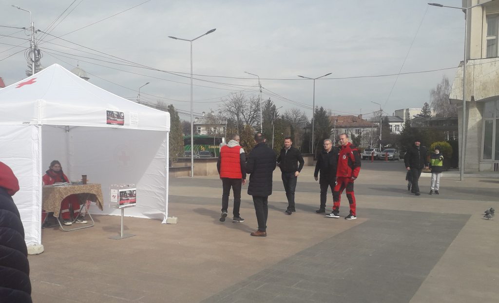 Un cort al celor de la Crucea Roșie Dâmbovița ce este amplasat în “Piața Tricolorului” din centrul orașului.