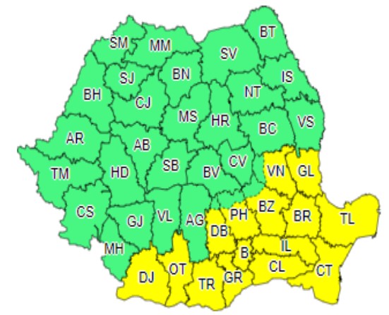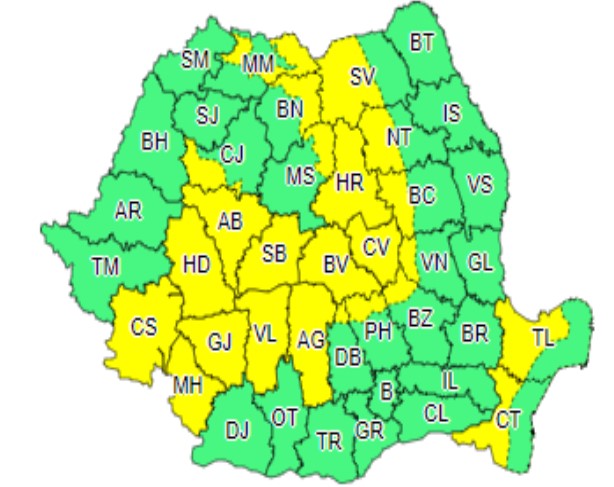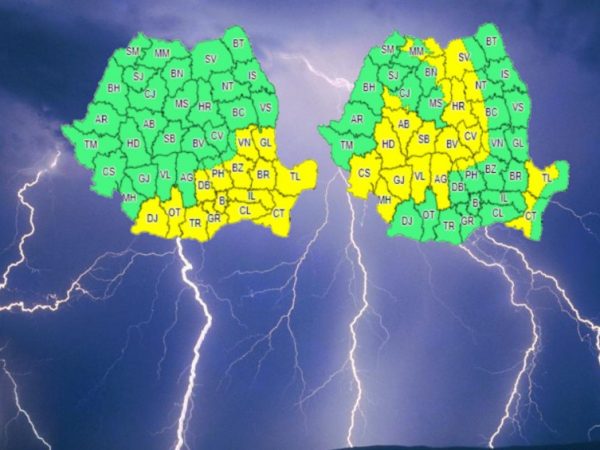 În data de 7 iulie (până la ora 12.00) codul galben va fi prelungit, pentru anumite zone ale țării: