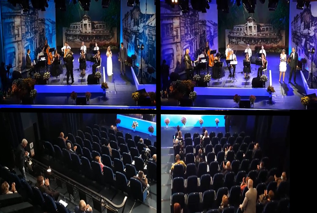 Iată cum a arătat festivalul romanței, de la Târgoviște, în prima seară (23 octombrie). Imaginile sunt mai mult decât grăitoare. Oricum, așa cum anticipam, nu există public, sala în care are loc festivalul fiind populată cu apropiați ai festivalului (invitati, juriu, concurenți, staff organizatoric, membrii ai televiziunii ce transmite evenimentul, etc, în total din ce am numărat, aproximativ 30 de persoane, în sală, pe scaune).
