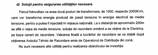 Finalizarea implementării proiectului este prevăzută a avea loc până în decembrie 2026. Aceasta este varianta de energie verde (n.m.- mai existau variante de energie eoliană sau hidro, pentru încadrarea în această categorie, cea care nu presupune folosirea combustibililor fosili, poluatori, din variantele de producere a energiei electrice folosind cărbune sau gaz). Energia solară, realizată prin aceste parcuri fotovoltaice, este o energie verde, deci nepoluantă, dar care pe lângă numeroasele avantaje (n.m.- destul de ușor de produs, deci ieftină, ar fi unul dintre avantaje) are și câteva dezavantaje.