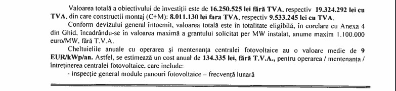 Cu o finanțare de 19 milioane de lei, aproximativ, o finanțre venită în totalitate de la Fondul pentru Mediu (bani europeni, până la urmă, dar care se dau celor care depun proiecte și care mai și cunosc pe cineva în lanțul puterii administrative centrale), va fi realizat un parc fotovoltaic, la Târgoviște, pe o suprafață de aproximativ 5 hectare (teren viran în imediata vecinătate a Complexului Turistic de Natație), aflată în proprietatea municipiului Târgoviște.