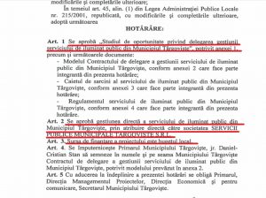 Consiliul Local Municipal Târgoviște a aprobat (19.11.2018) un studiu de oportunitate “privind delegarea serviciului public de iluminat public din Municipiul Târgoviște”. O formalitate birocratică, pentru că oricum serviciul era înființat de câteva luni. Pentru cei ce nu au lecturat articolul anterior (din spațiul Valahia Media) fac precizarea că aparent era vorba de o inutilitate. Practic, Primăria Târgoviște delega atribuțiile gestionării iluminatului public către o societate (SC Servicii Publice Municipale SRL) unde este acționar majoritar (unic chiar), după ce, anterior (din 2014), acest serviciu fusese gestionat tot de o societate a Primăriei Târgoviște (SC Municipal Construct).