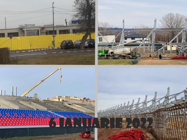 Realitatea, în ceea ce priveste stadionul, este așa cum apare și în imagini ( realizate în data de 6 ianuarie 2022), la stadionul “Eugen Popescu”. Un șantier, în care câțiva muncitori se plimbă, sau plimbă, după caz, cu câteva instrumente de construcții. Tribuna nouă ( scheletul metalic) a făcut deja un an de când este practic abandonată ( se promitea, prin primavara anului 2021, că în câteva luni va fi finalizată).