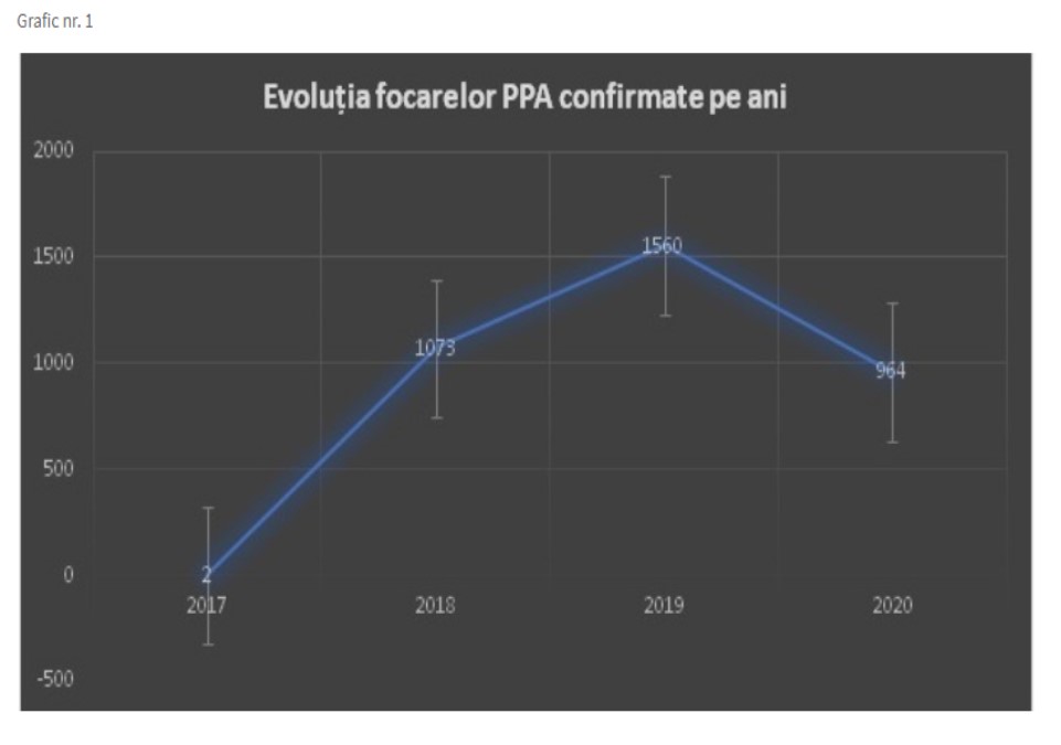 ANSVSA a efectuat o analiză a situaţiei PPA în România de la diagnosticarea primului focar în iulie 2017, la Satu Mare, până la data de 01.11.2020, în baza unui studiu efectuat de Autoritatea Europeană pentru Siguranța Alimentelor pentru România ţinându-se cont de evoluția și analiza factorilor de risc epidemiologici. Studiul a fost prezentat în ședința cu Șefii Serviciilor Veterinare din țările membre a Uniunii Europene, din perioada 27.01- 28.01.2020.