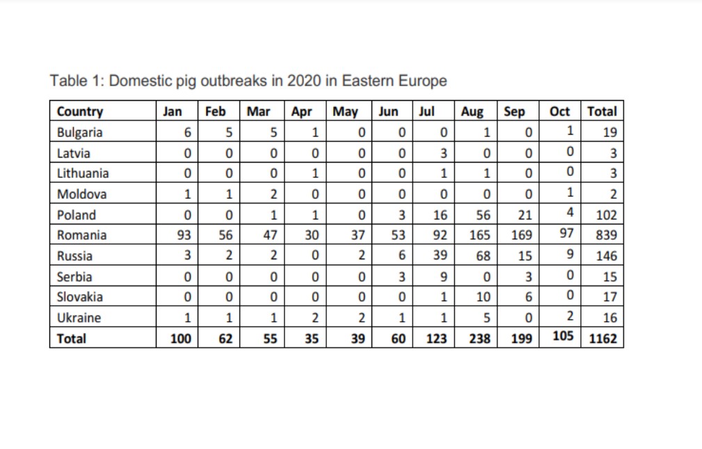 Conform studiului se putea estima o creștere a numărului de focare în anul 2020 față de anul 2019. Totuși, prin măsurile luate de autorităţile din România s-a reușit o scădere a numărului acestora. Este adevărat că reducercerea focarelor în anul 2020 se datorează și restricțiilor impuse pe perioada stării de urgență, aspect care demonstrează că mișcarea necontrolată a porcinelor constituie unul din principalii factori de risc pentru difuzarea bolii.