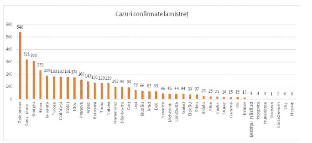 - Județul Mehedinți – 1 focar PPA;