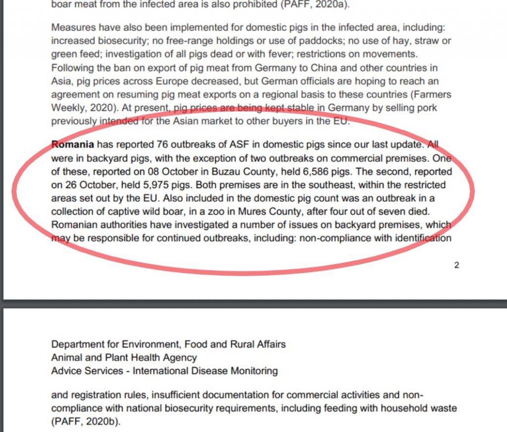 Mii de porci domestici (ferme) au fost confirmați cu PPA, doar în octombrie 2020, în Buzău, spre exemplu. De asemenea, focare de PPA multiple, sunt și la mistreți, România fiind, în continuare, țara cea mai afectată de pe continentul european. Ce spune însă ANSVSA despre motivele acestui “dezastru”?