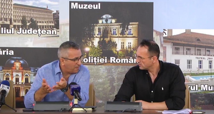 Foto: Ședință de urgență, la CLM Târgoviște (14.07.2025); Primarul Târgoviștei (Daniel Cristian Stan, dreapta imagine) îi transmite lui Cătălin Rădulescu, viceprimar la Primăria Târgoviște (și președinte de ședință, stănga imagine) să își impună autoritatea și să nu mai lase consilierii să adreseze, “la liber”, atâtea întrebări supărătoare, despre situația de la Chindia