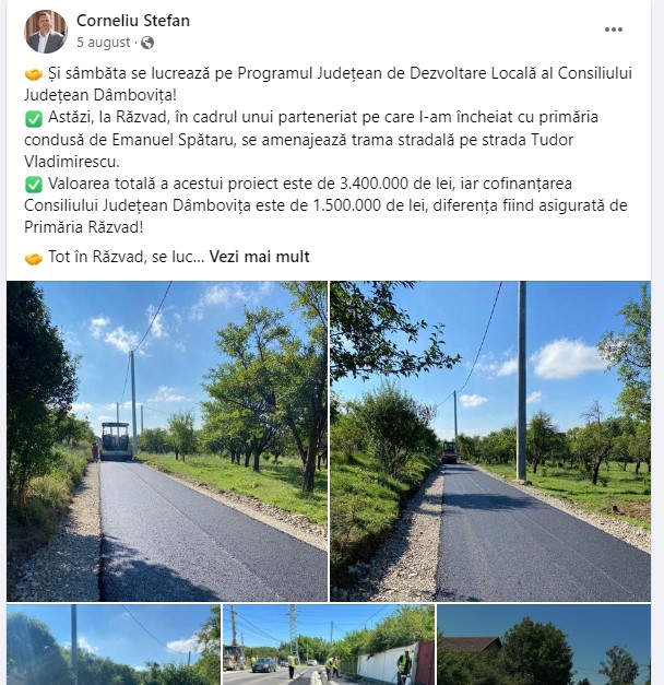 Revenind la Dâmbovița. În data de 5 august 2023, Consiliul Județean Dâmbovița anunța, oarecum triumfalist, prin intermediul paginii de facebook a președintelui instituției, Corneliu Ștefan, că la Răzvad, la proiectele implementate prin PJDL se lucrează inclusiv sâmbăta (vezi foto, mai sus).