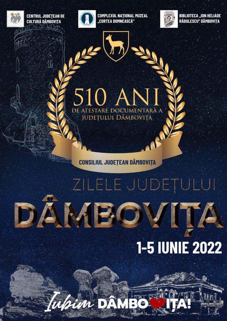 Foto: Anunț oficial (CJ Dâmbovița) al debutului evenimentului “Zilele Judetului Dâmbovița (mai 2022, la Muzeul de Artă din Târgoviște)