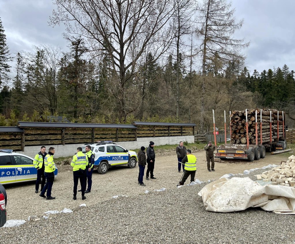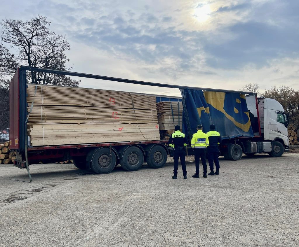 Foto: Lemn și mijloace de transport confiscate; Sursa foto: Bodnar Daniel /Facebook