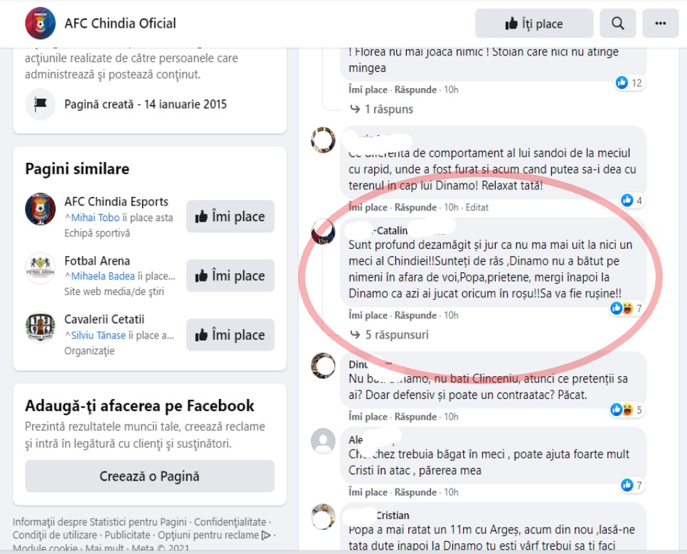 Mai mult chiar, o bună parte a suporterilor cer rezilierea contractelor cu unii jucători , cel mai vehiculat nume fiind al lui Daniel Popa, acuzat ca a “vândut” meciul cu Dinamo ( jucătorul dâmbovițean fiind adus de la Dinamo). În unele comentarii, între vinovați sunt introduși si cei de la Primăria Târgoviște ( ce alături de CJ Dâmbovița finanțează echipa târgovișteană). Administrația publică este acuzată că, din cauza faptului că nu a reabilitat la termen stadionul de la Târgoviște ( lucrări începute în 2019), a pus umărul la situația dezastruoasă din momentul de față, una în care pare că, spun suporterii, se dorește, de către conducerea echipei, chiar retogradarea în liga secundă, un campionat unde costurile cu echipa sunt evident mai reduse, decât în prima ligă. Iată, mai jos, câteva fragmente ( reacții) din lungul șir de reproșuri ale suporterilor celor de la Chindia: