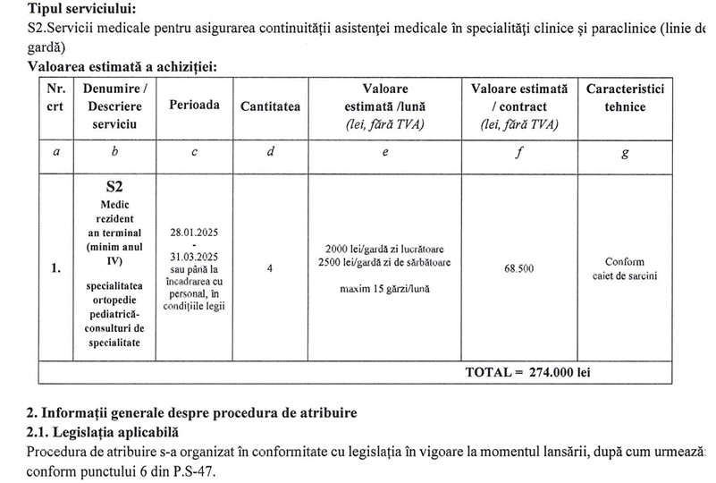 Foto: Fragment contract de prestări servicii medicale, medic pediatru la SJUT (anul 2024)